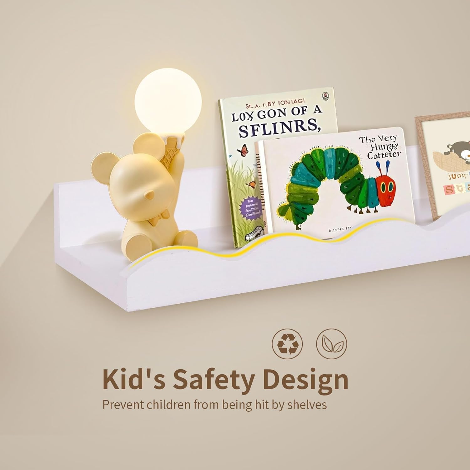 - Kid-friendly Wall Shelves - The Book Shelf for Kids Rooms is Made of Sustainable and Safe Materials to Ensure the Safety of Your Kids. The Wall Floating Shelves Can Create an Organized and Accessible Environment for Kids, Helping to Cultivate Your Children's Reading Habits While Promoting a Healthier Family.
