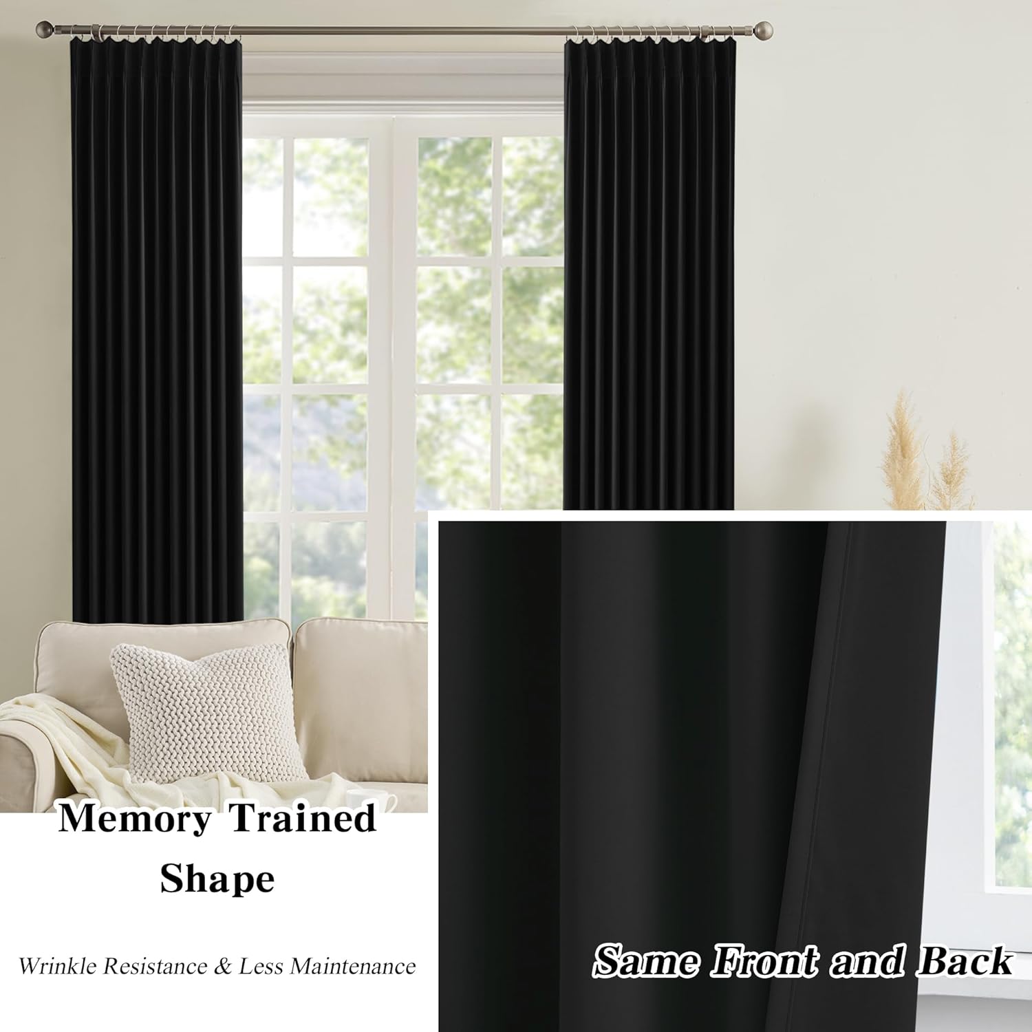 Black Blackout Curtains 132 Inches Long for Living Room Patio Door 2 Panels Set Room Darkening Pinch Pleated Extra Long Polyester Pinched Curtains Thermal Insulated Drapes 11 Ft Tall 40 Wide