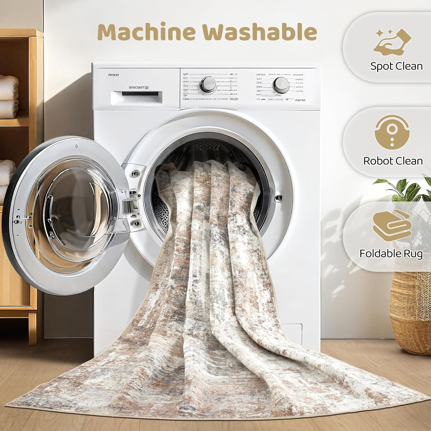 5x8 Area Rug Living Room: Machine Washable Large Abstract Modern Soft Rugs Stain Resistant Indoor Floor Non Slip Accent Carpet for Bedroom Nursery Playroom Office Dining Room Dorm Home House- Brown
