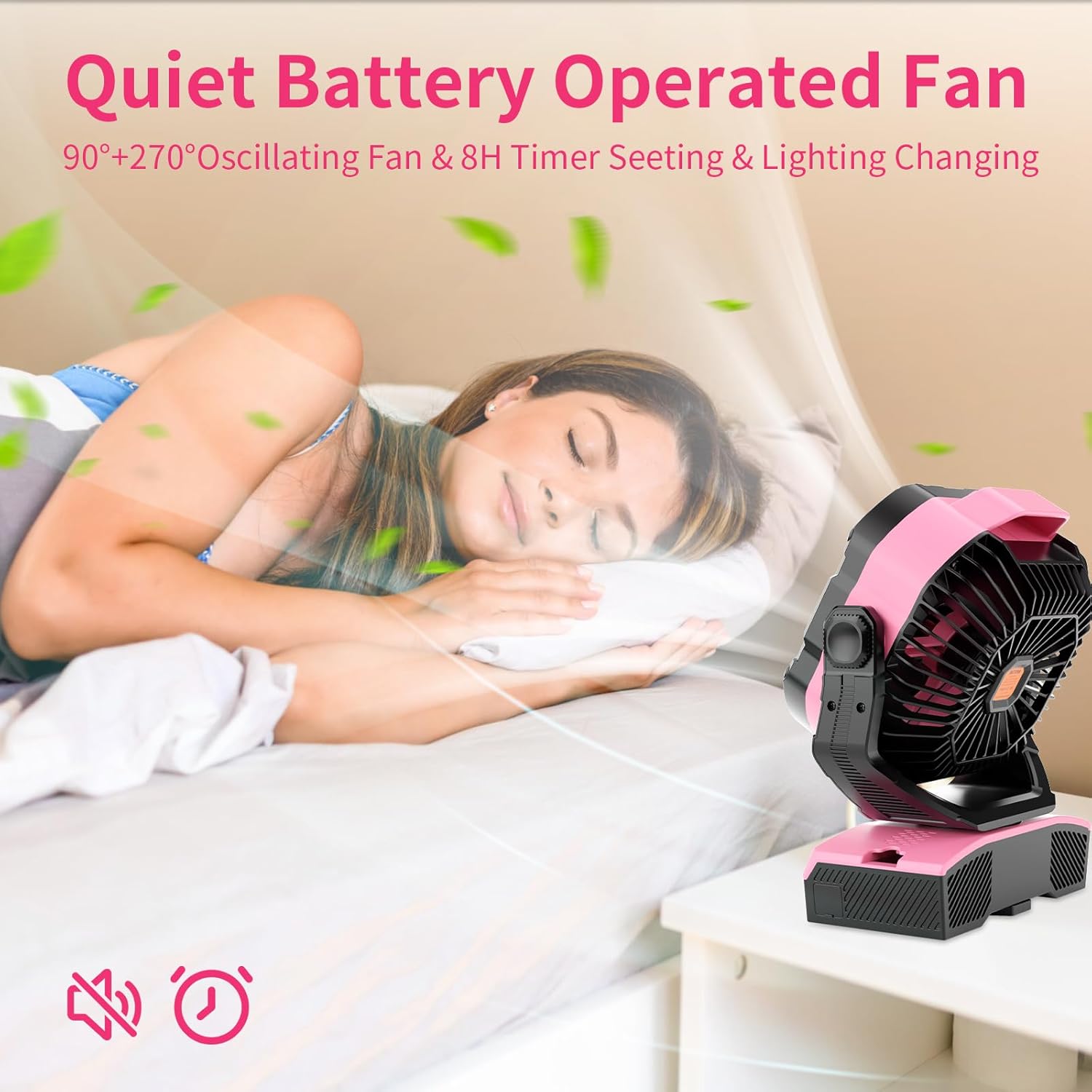 Camping Fan Oscillating Portable Fan 20000mAh Battery Powered Fans Rechargeable Camping Tent essentials Light Hook 270° Pivot USB Desk Outdoor Battery Operated X68 Pink