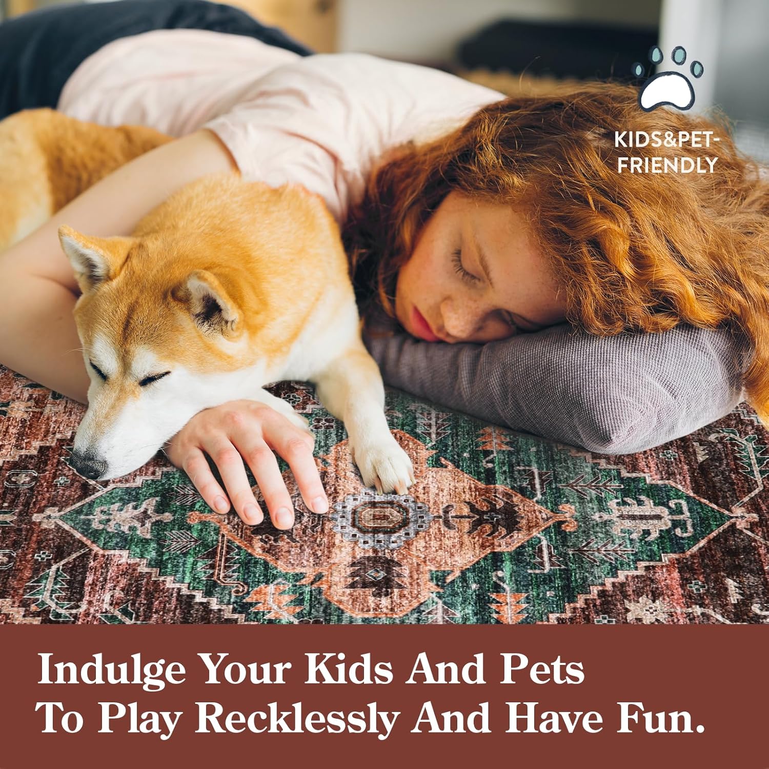 Lahome Area Rugs 9x12 Living Room - Non-Slip Ultra-Thin Washable Large Carpet, Non-Shedding Oriental Vintage Distressed Carpet Rug for Dining Room Bedroom Office
