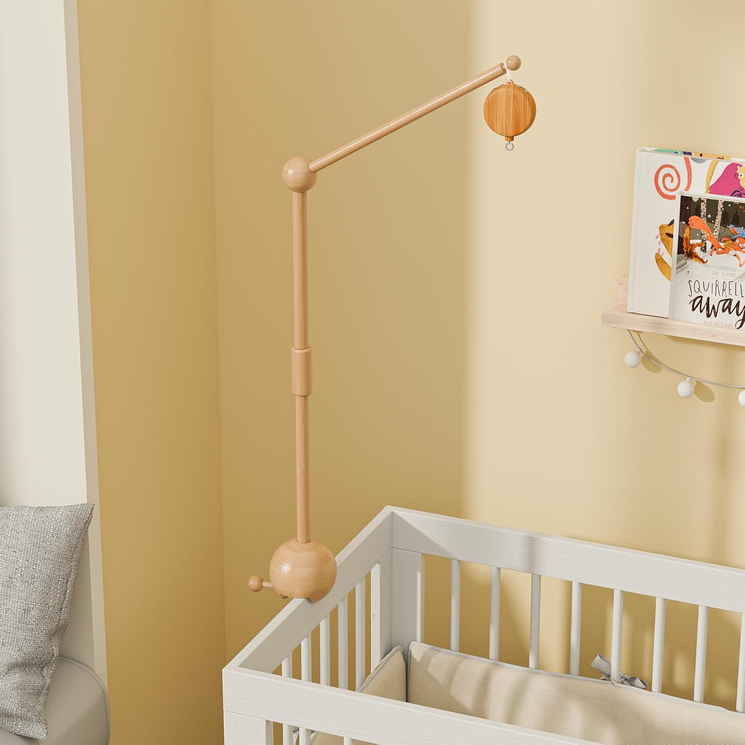 Crib Mobile Arm with Music Box,32.5 Inch Crib Mobile Stand,Wooden Mobile Arm for Crib (2 Modes,360°Adjustable,100% Beech Wood) Baby Crib Mobile for Boy and Girl