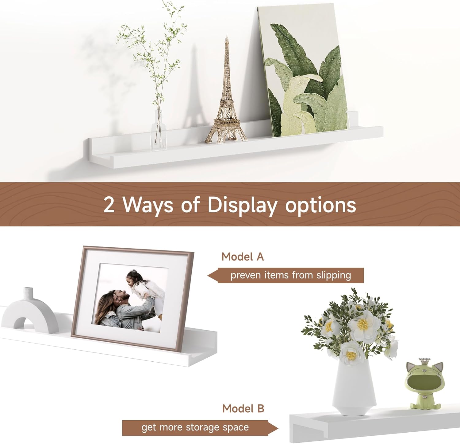 - 3.5" PICTURE LEDGE DESIGN: Ideal for displaying photos, artwork, or collectibles, these feature a thoughtful extremely narrow 3.5-inch width ledge design to prevent items from sliding forward, its mounting holes are spaced 16 inches apart for secure mounting to wall studs uncluttered aesthetic