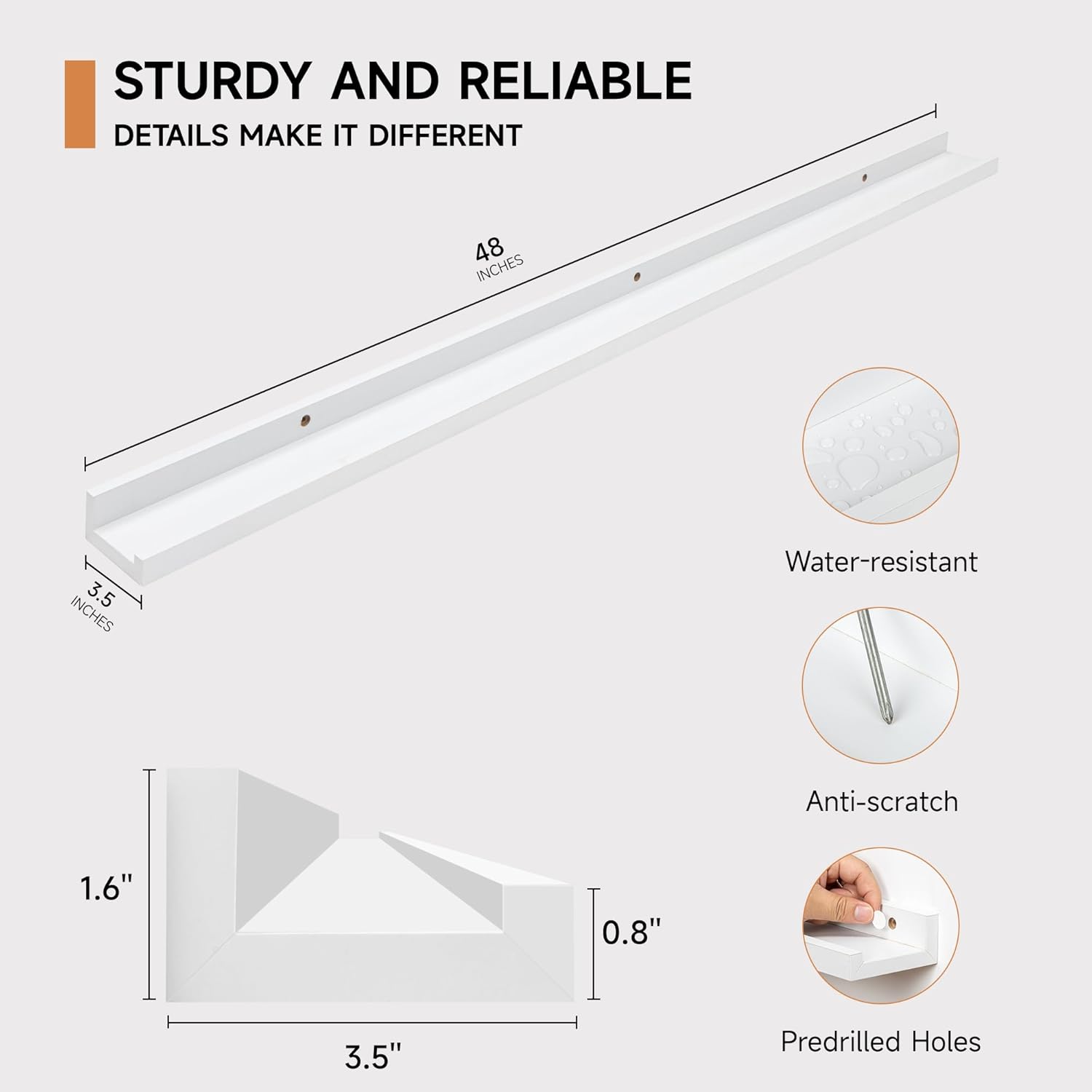 Picture Ledge Shelf for Wall, Floating Shelves Set of 4, 48 Inch Long Nursery Book Shelves for Toys Storage, Kids Bookshelf Wall Mounted for Books Photo Frames, White