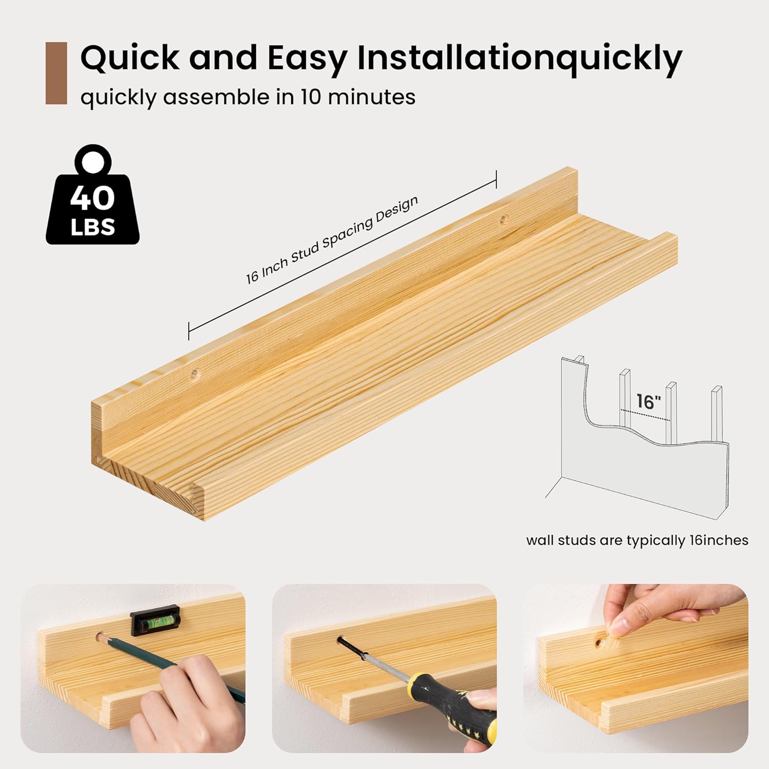 - Easy to Install: Fun Memories fully assembled solid pine wood picture ledge shelf set of 2 comes with the pre-drilled holes and necessary hardware including a mini level to make installation a breeze. The floating design creates a seamless, streamlined look, adding a touch of modern sophistication to your interior. If you have any questions about our products, please feel free to contact us