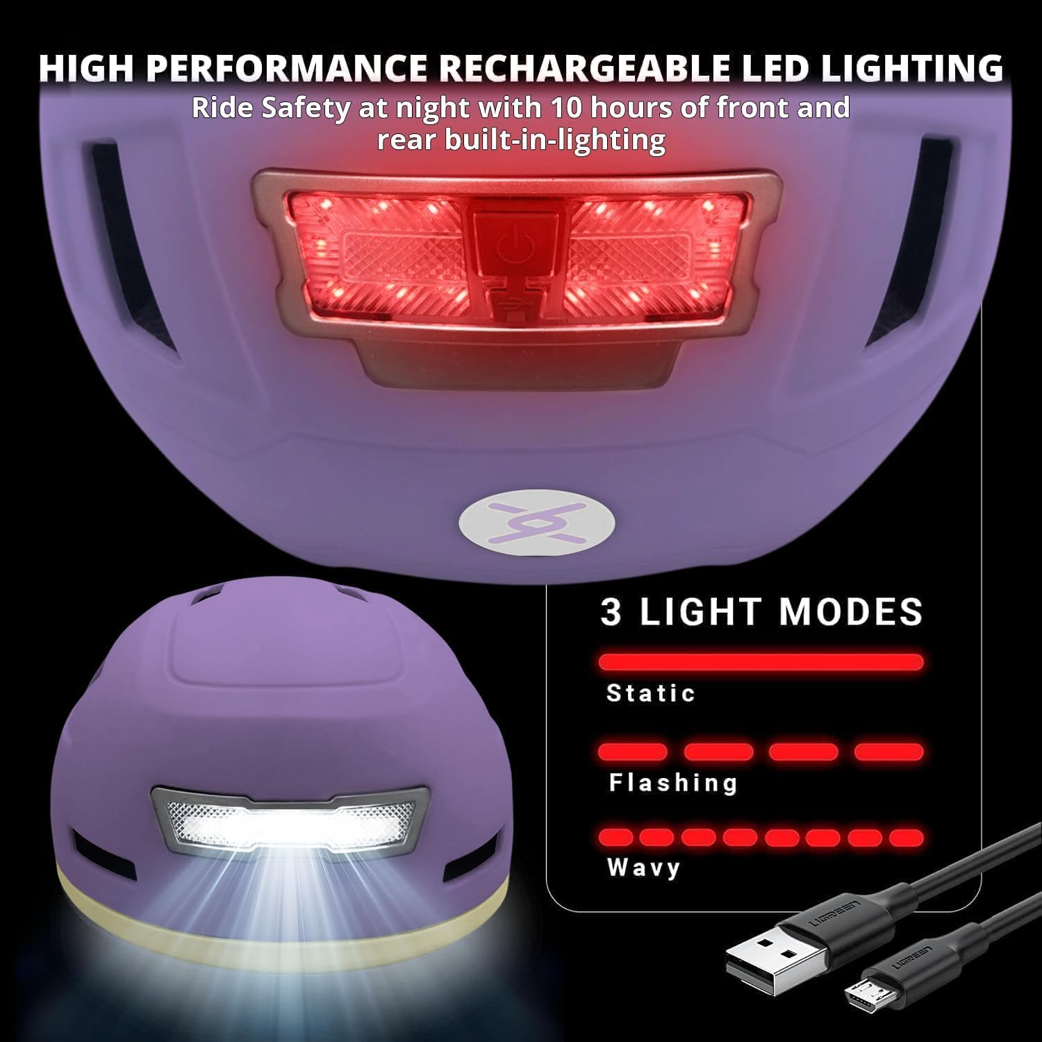 - ENHANCED VISIBILITY: Built-in LED lights improve visibility at night or in low light. USB rechargeable, lightweight, and with three modes (flash, static, wavy).