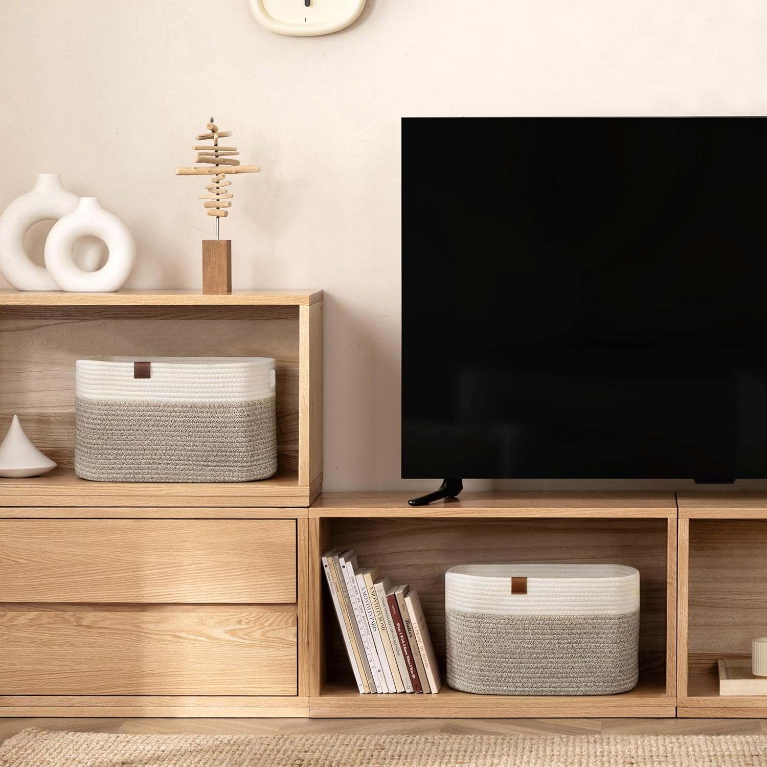 - Convenient Handles: Each basket for organizing has 2 sturdy & soft handles. It is convenient for moving and even if you carry items of high weight, do not hurt your hands. Built-in handle design makes your cube rope basket more beautiful.