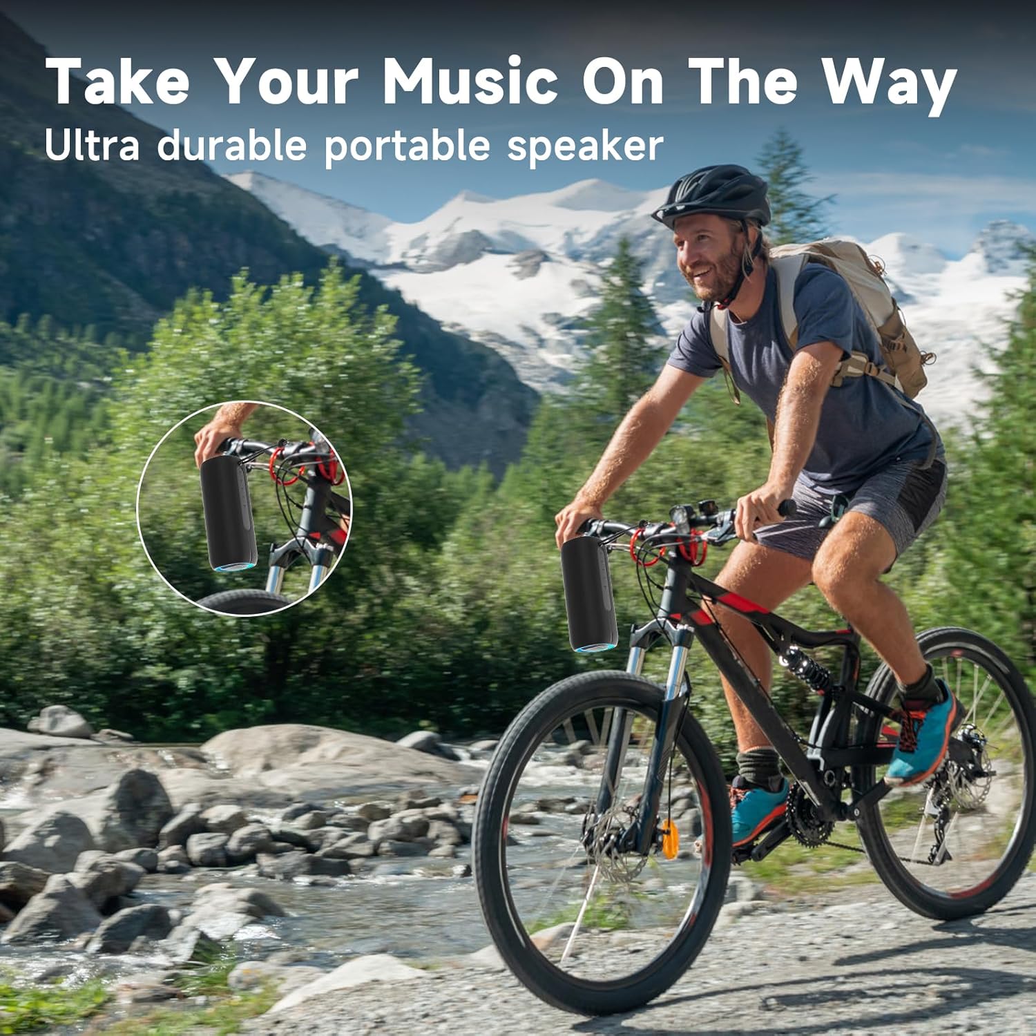 - 【Waterproof and Rugged Design】The waterproof bluetooth speaker has an IPX5 waterproof rating to withstand rain, spills and splashes. It's designed to withstand bumps and drops, more durable than others, and compact and easy to carry. Perfect for pool parties, beach parties, barbecues, biking, hiking, camping and more.
