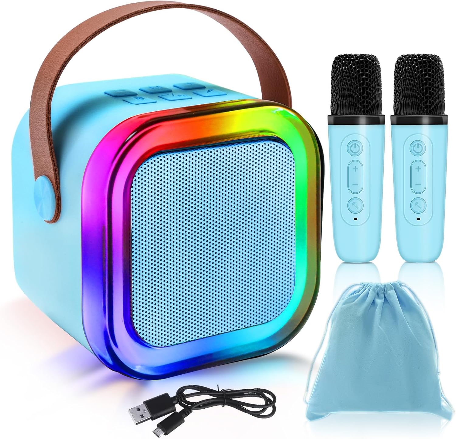 Mini Speaker with 2 Microphones,Kids Mini Karaoke Machine with Portable Speaker,3 LED Disco Lights,5 Funny Sound, Gift for Girl Boy Toddler Teen Adult Birthday Holiday Home Party-Blue