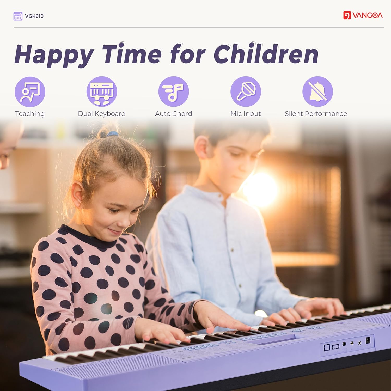 Vangoa VGK611 Piano Keyboard for Beginner, 61 Keys Electric Keyboard Piano Portable Music Keyboard with Mini Lighted Keys, Electronic Piano for Kids Boy Girl, Purple