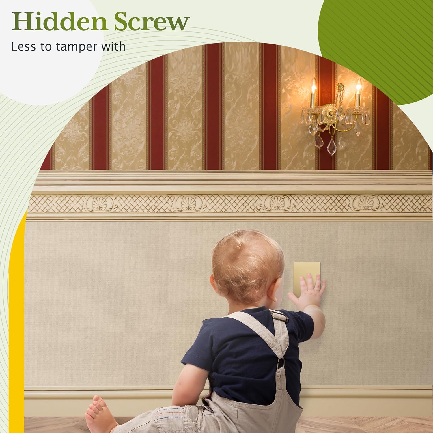 - ๐๐๐ซ๐๐ฐ๐ฅ๐๐ฌ๐ฌ ๐๐๐ฌ๐ข๐ ๐ง - Screwless wall plate design is child-safe and offers a clean, high-end appearance that is ideal for a variety of residential and commercial applications; features a soft metallic-colored finish