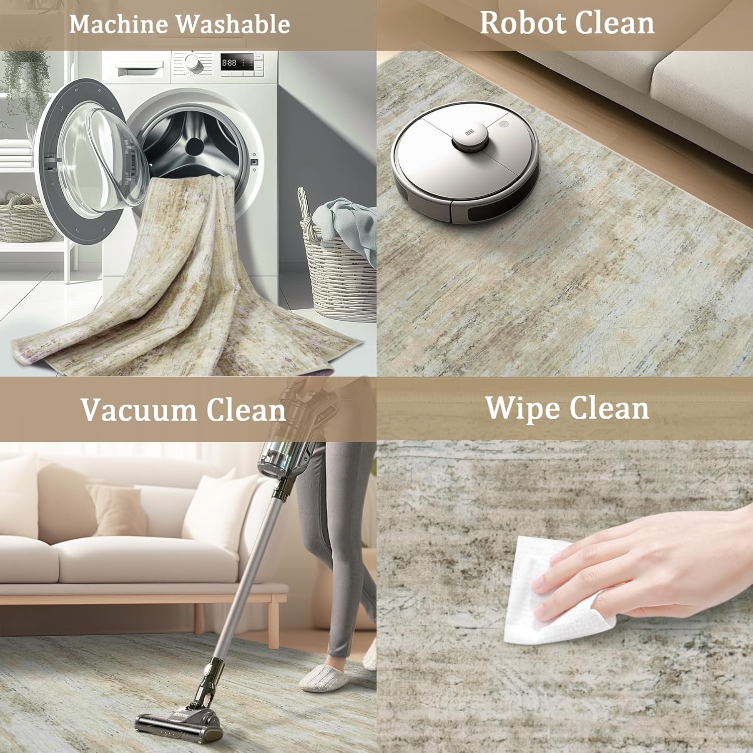 - Machine Washable Rug: The added bonus of it being machine washable makes it a breeze to maintain and saves you time. You no longer have to worry about spills or stains ruining your rug. Simply throw it in the washing machine. Regularly using a vacuum cleaner(Just low power)to remove dust or hair for daily care. Please remember not to use bleach