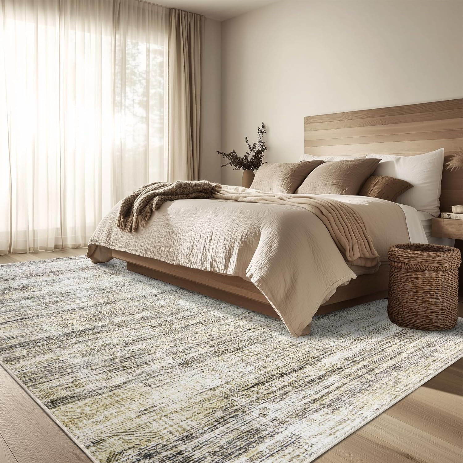 6x9 Area Rug Living Room Rugs - Washable Rug Large Modern Abstract Soft Thin Carpets Indoor Floor No Slip Vintage Carpet for Bedroom Under Dining Table Nursery Home Office Decor Nature
