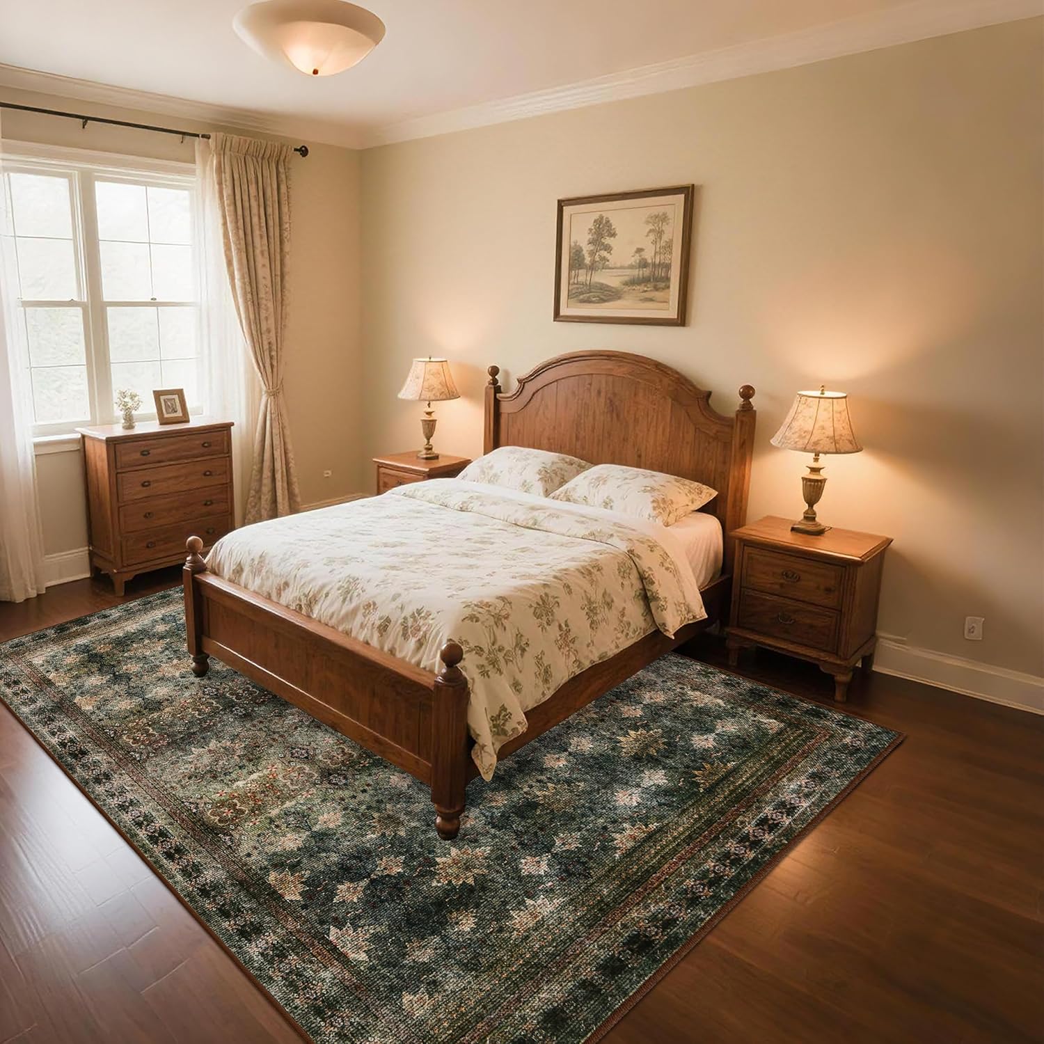 4x6 Area Rug for Bedroom Machine Washable, Non Slip Vintage Floral Kitchen Rugs for Dining Room, Rustic Indoor Floor Carpet for Kids Room, Playroom, Farmhouse(Dark Green/Brown/Multi)
