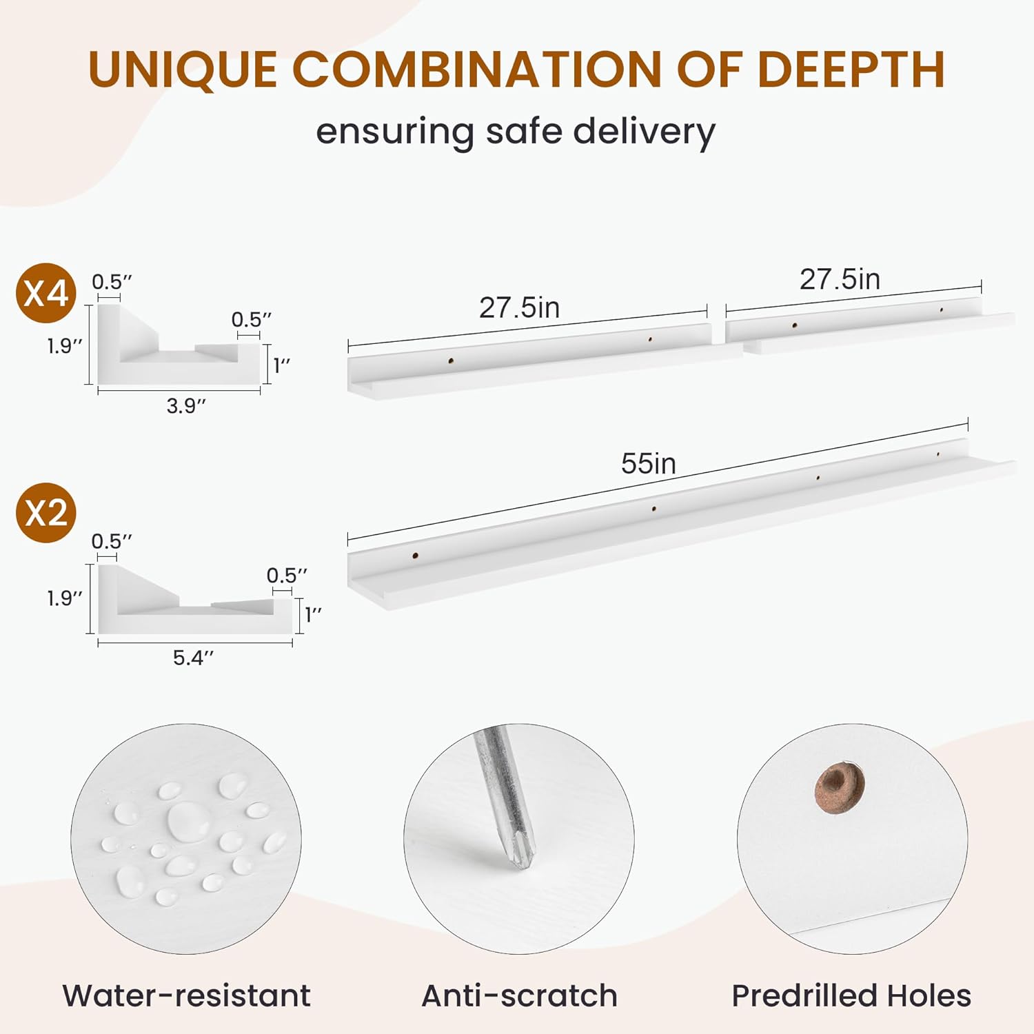 - Ledge Shelf with Lip Protection: Our every picture ledge shelf has a carefully designed front lip, which provides extra protection for your items to prevent them from slipping or falling off. You can rest assured that your favourite books, plants, picture frames, or decorative items are securely in place