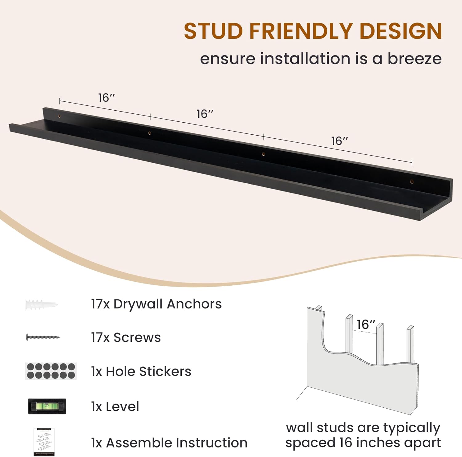 - Ledge Shelf with Lip Protection: Our every picture ledge shelf has a carefully designed front lip, which provides extra protection for your items to prevent them from slipping or falling off. You can rest assured that your favourite books, plants, picture frames, or decorative items are securely in place
