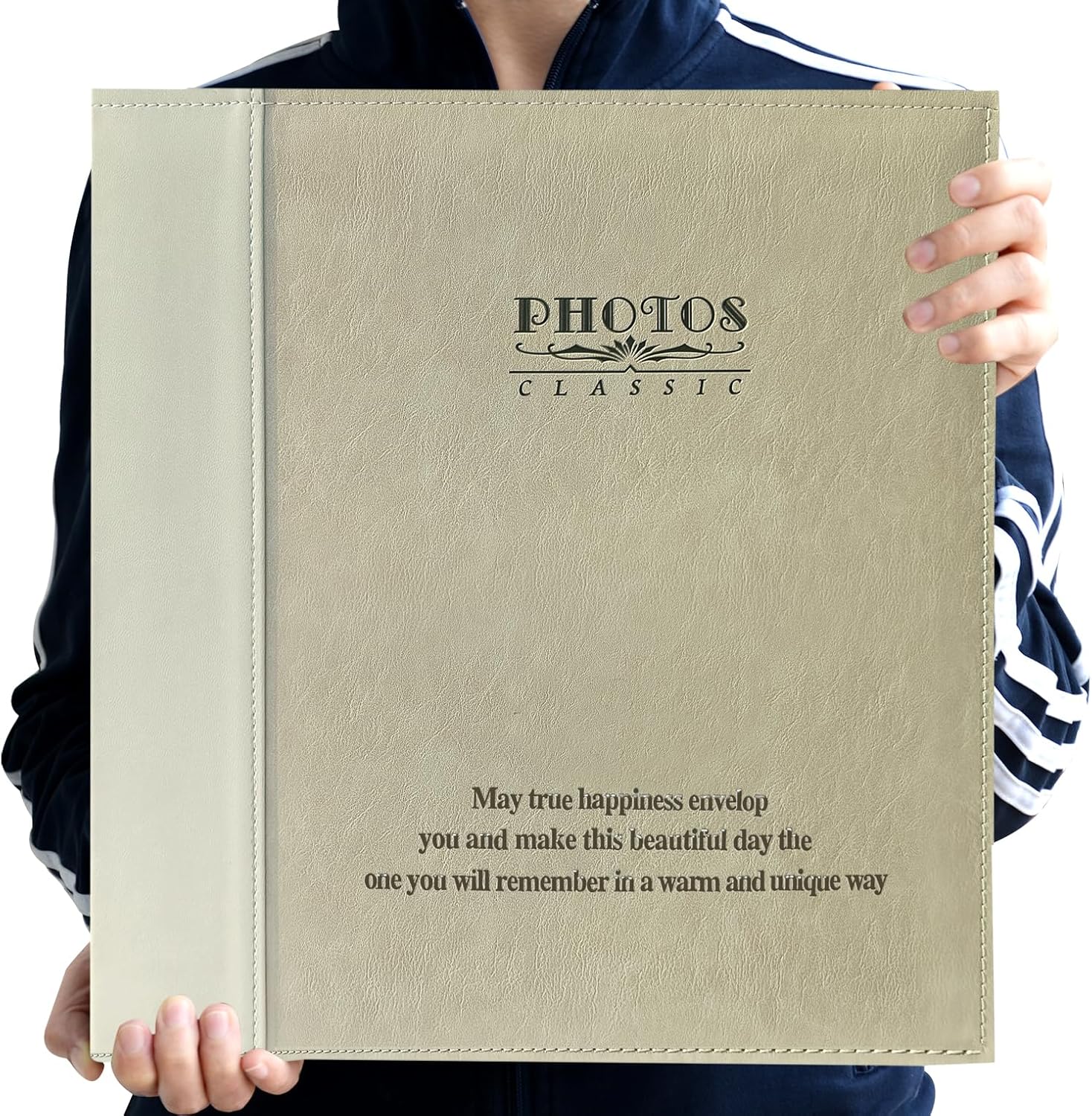 Magnetic Self-Stick Page Photo Album, Family Album, Leather Cover, Hand Made DIY Albums Holds 3x5, 4x6, 5x7, 6x8,8x10 Photos (Oatmeal)