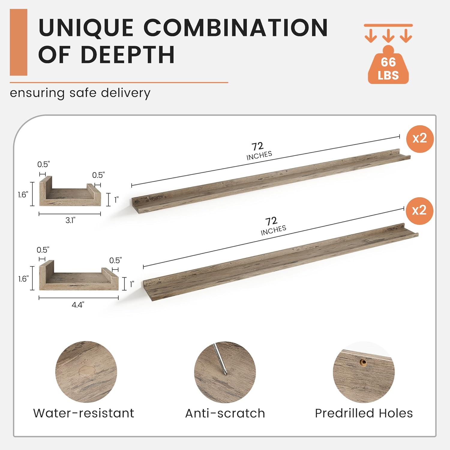 - 【Built to Last】Each floating wood shelves is made of high-quality wood, each shelf is designed for exceptional durability. The mounting holes are spaced 16 inches apart for secure wall stud installation, ensuring rock-solid support for your cherished items. Enjoy years of reliable use without sagging or warping