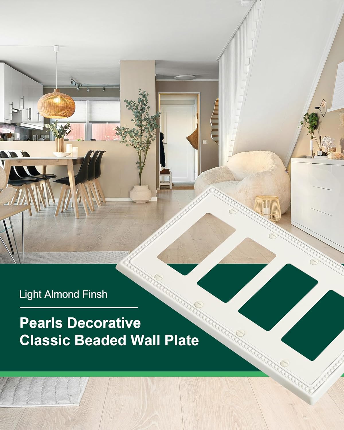 - Elegant Light Almond Finish - The quad decorator outlet covers features a soothing light almond finish, not as dark or yellow as ivory, offering a warmer tone than stark white. This elegant finish adds a fresh appeal to your room and seamlessly blends with any interior style, enhancing the overall aesthetic of your home decor.