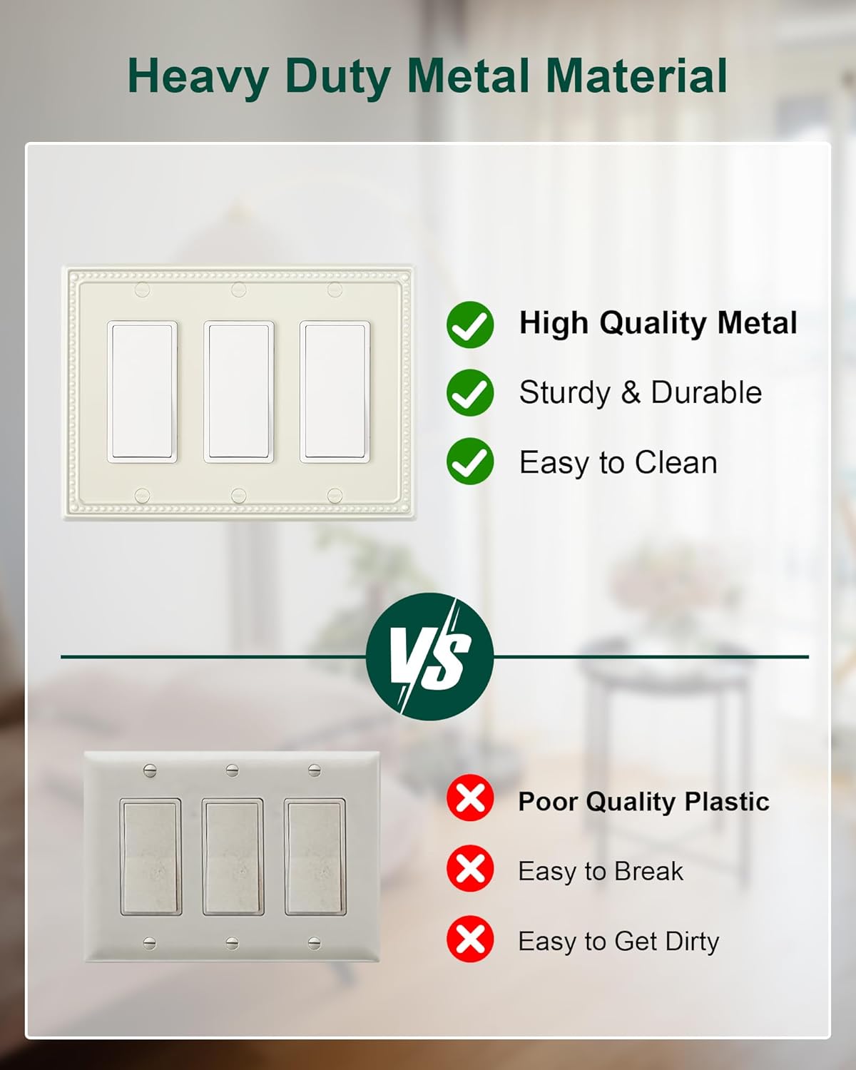 - Durable & Long-lasting - Constructed from high-quality metal, our light almond metal wall plate is built to last. It is resistant to impact, tarnishing, and corrosion, ensuring its durability and longevity. Ensuring it remains a stunning addition to your home for years to come.