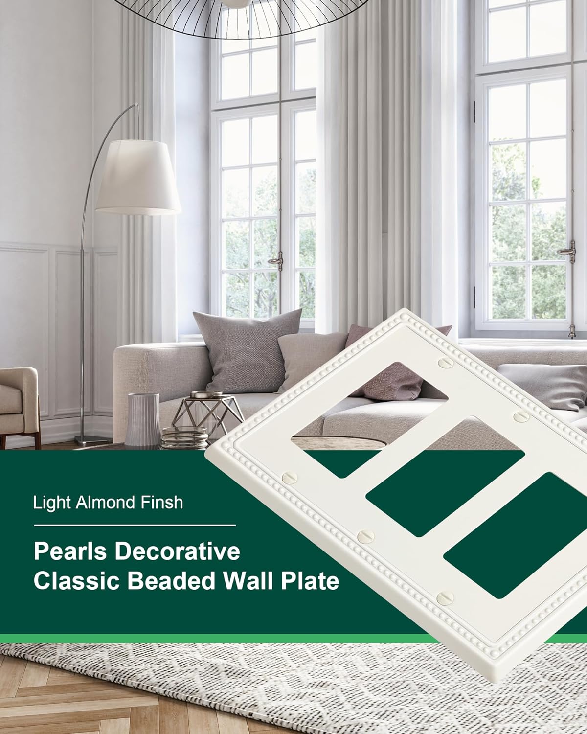 - Elegant Light Almond Finish - The tripple decorator outlet cover features a soothing light almond finish, not as dark or yellow as ivory, offering a warmer tone than stark white. This elegant finish adds a fresh appeal to your room and seamlessly blends with any interior style, enhancing the overall aesthetic of your home decor.