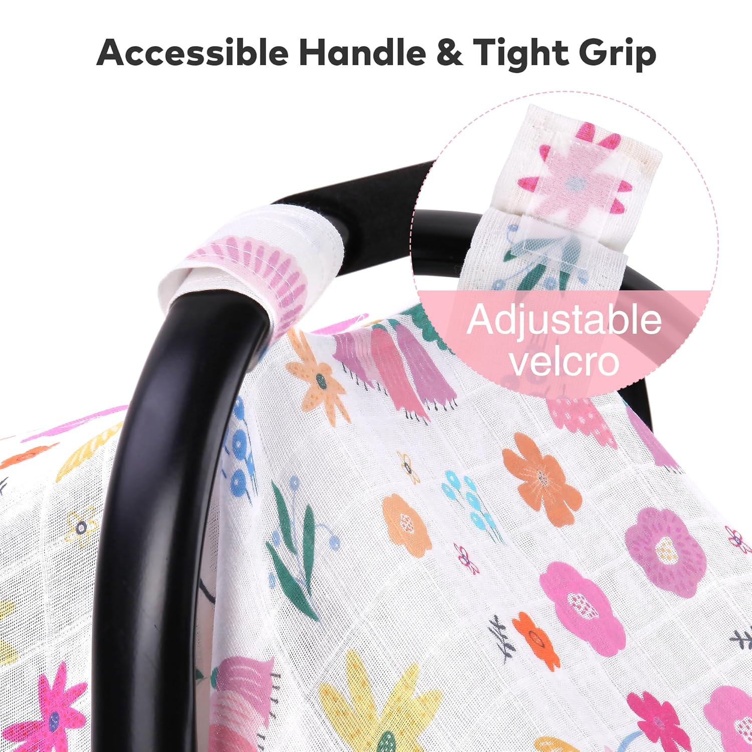 - BREATHABLE COTTON MUSLIN: To prevent overheating and ensure proper ventilation, our baby car seat covers are made from breathable cotton muslin. The unique weaving fabric makes they are light enough to let air in, but heavy enough to block out wind and sun, great for summer and hot weather