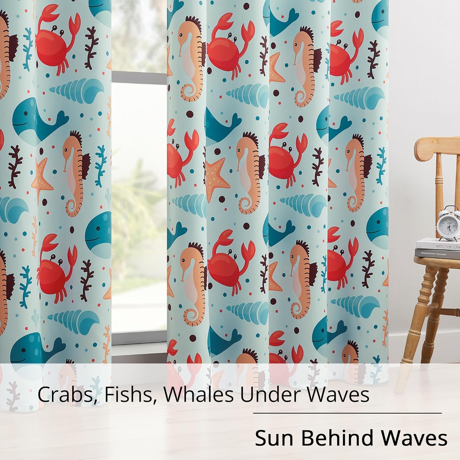 Kids Blackout Curtains - Ocean Whale Design, 100% Blackout, 2 Panels, Each W52×L84, Thermal Insulated for Bedroom, Noise Reducing, Excellent Colorfastness, Dive into an Underwater Adventure