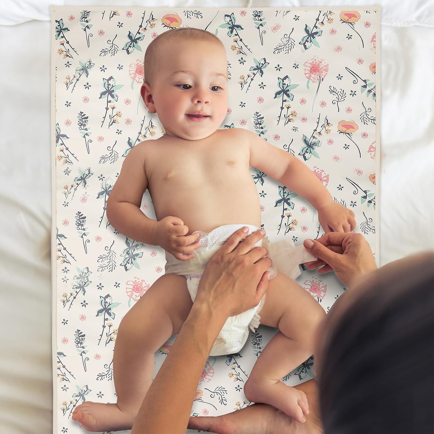 Vegan Leather Baby Changing Mat - Wipeable Portable Changing Pad, Foldable Travel Changing Mat for Baby, Newborns Toddlers Shower Gifts (Floral,20"*28")