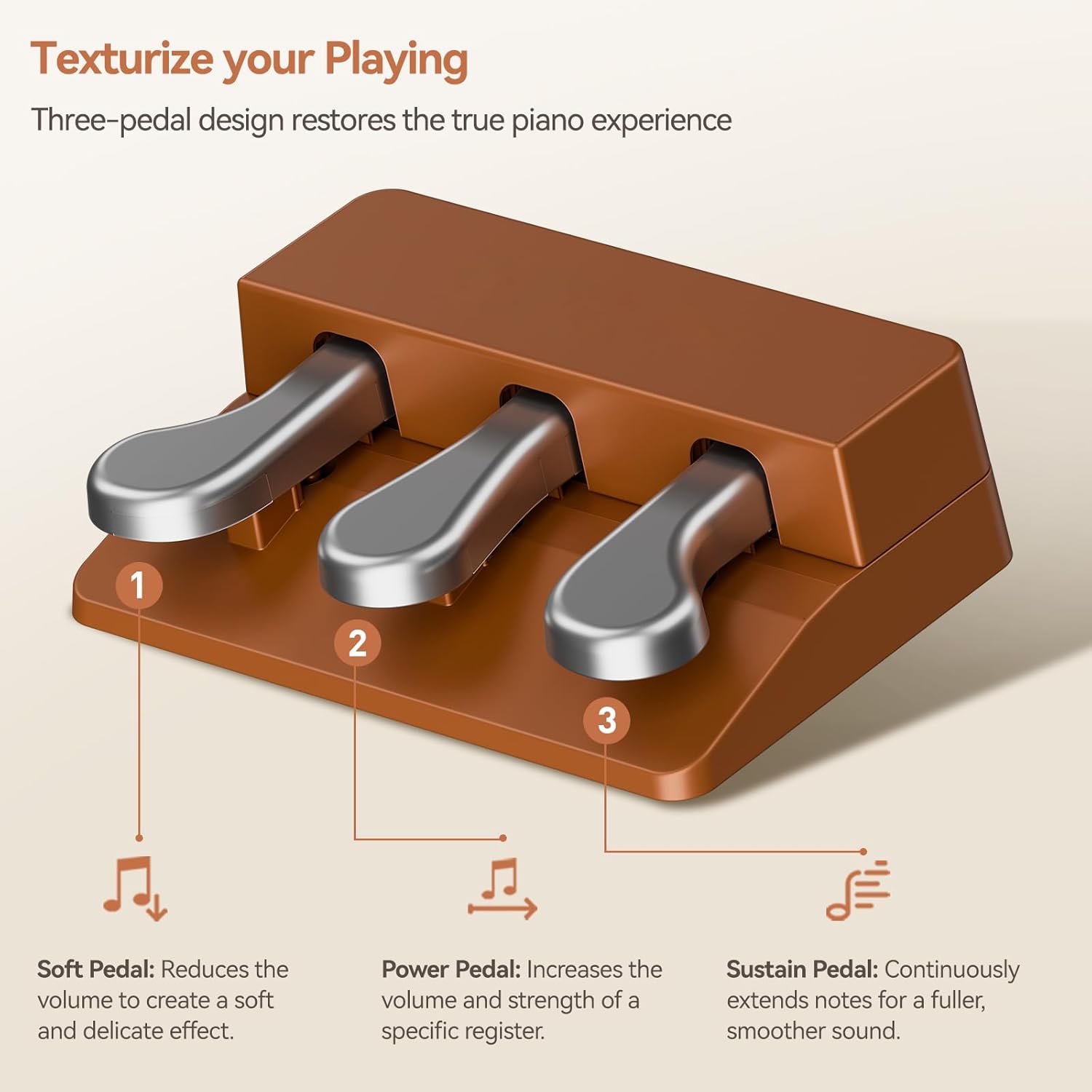 - 【AUTHENTIC PIANO SOUND】The digital piano accurately simulates the sound of an acoustic piano, with 128 maximum polyphony and a three-pedal design, allowing you to immerse yourself in the world of music whether you are practicing or performing.