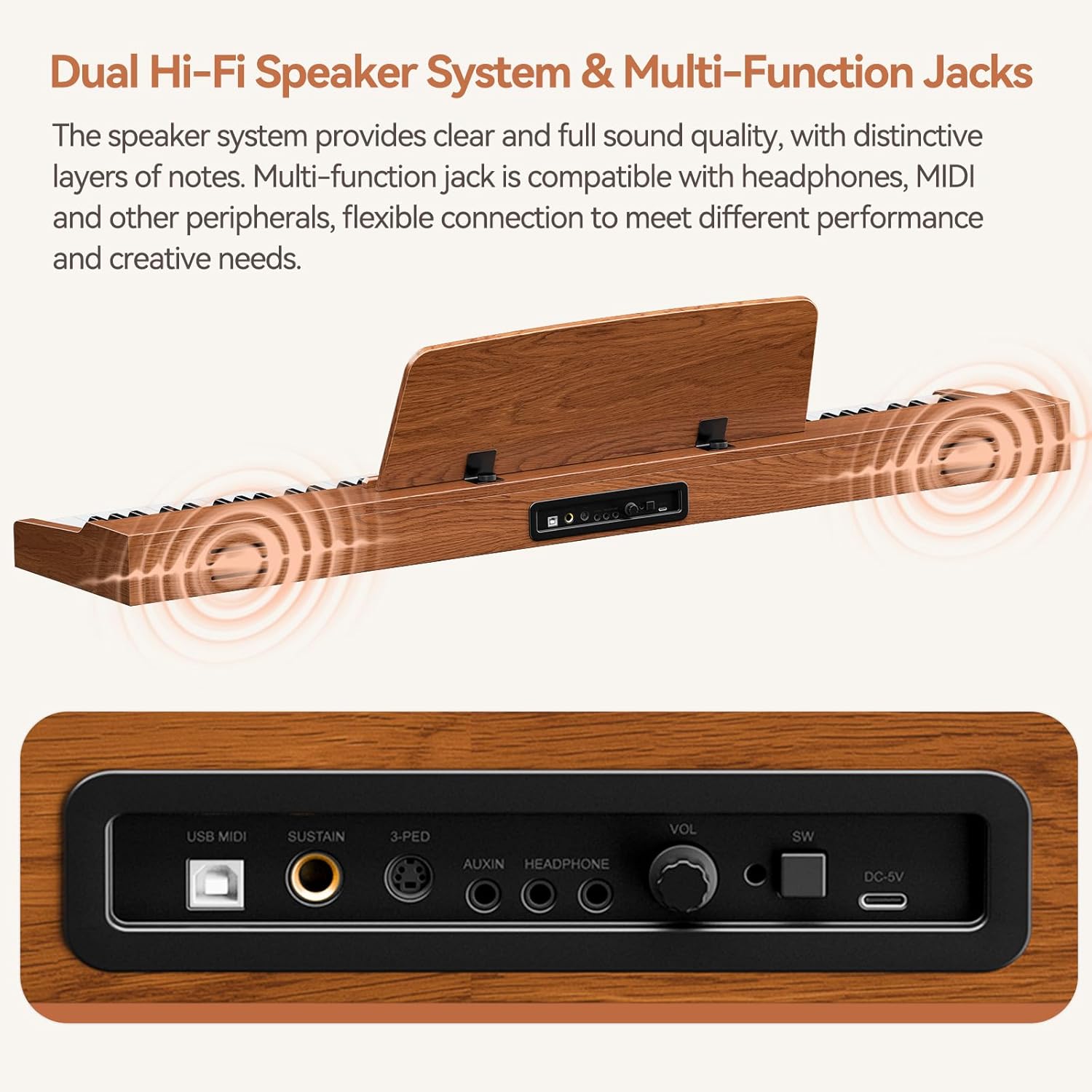 - 【SENSITIVE PIANO TOUCH】The digital piano features an 88-key full-size weighted key design, perfect for beginners who are still developing the touch of a piano player.