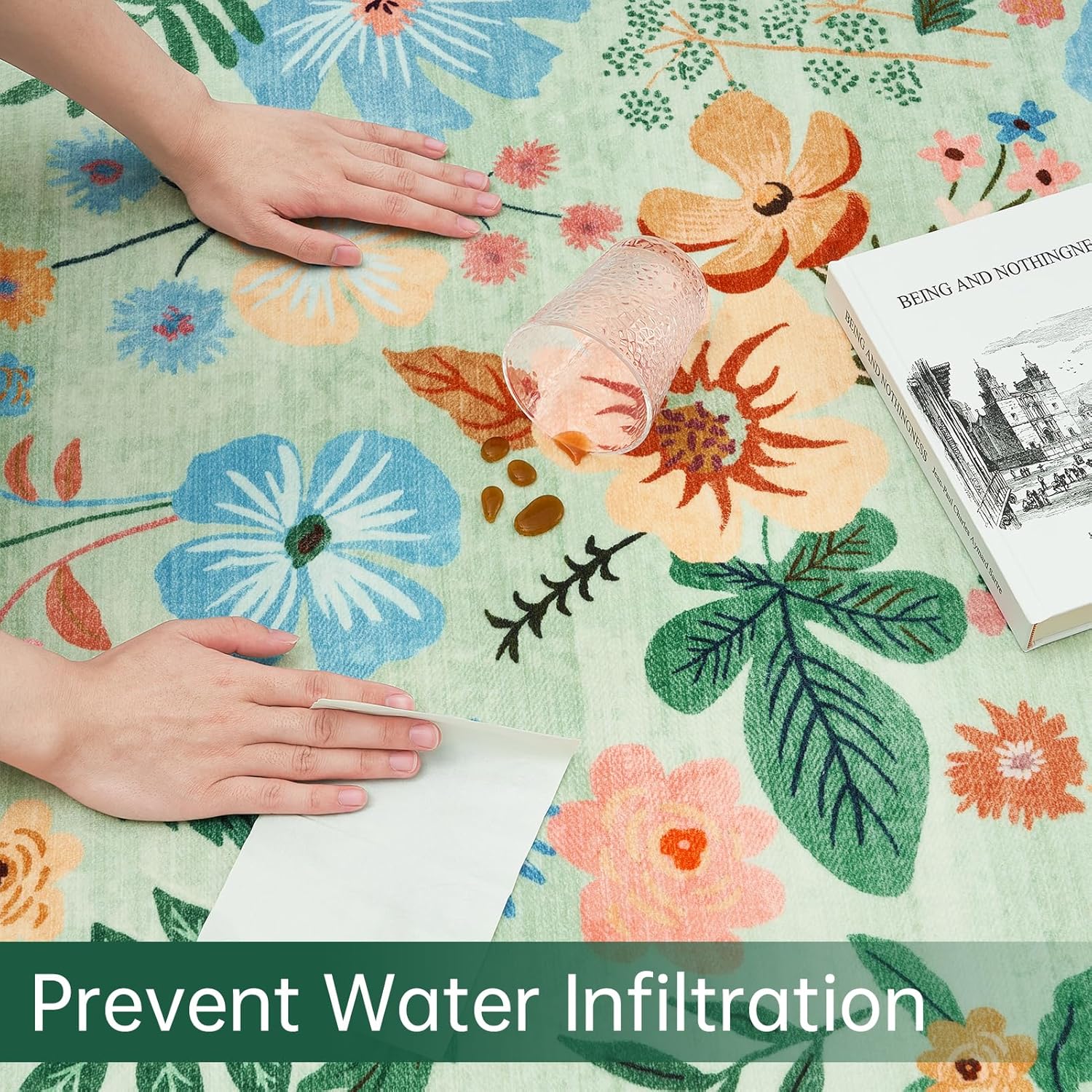 8x10 Area Rugs for Living Room Sage Green Washable Low Pile Non Slip Stain Resistant Large Rugs Boho Vintage Floral for Bedroom Dining Room Family Room Nursery Dorm Spring Home Decor