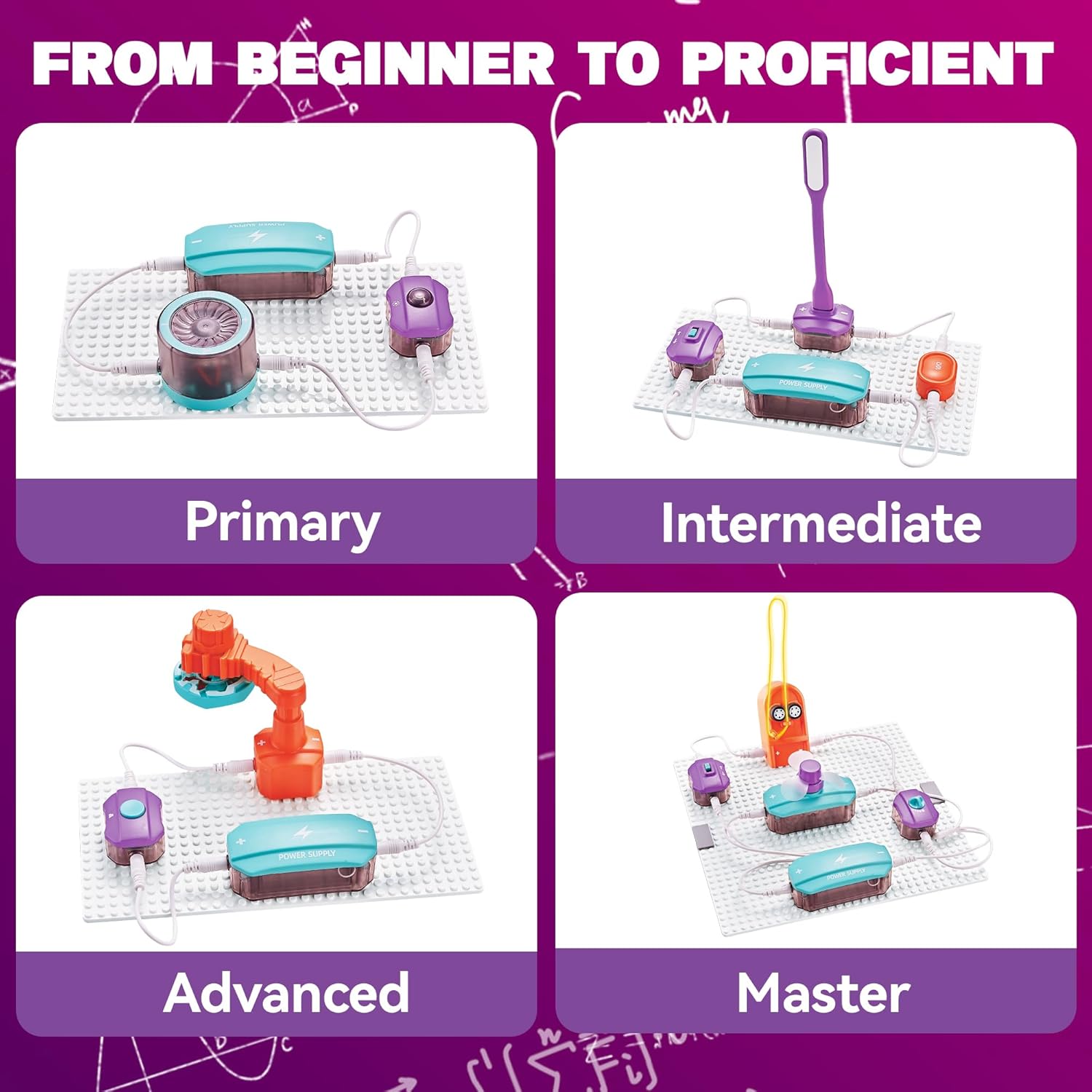 - Colorful Manual - The colorful page-manual makes a thorough introduction of building circuit in different ways. Build kids' confidence and arouse their curiosity to raise questions during playing the circuit board for kids