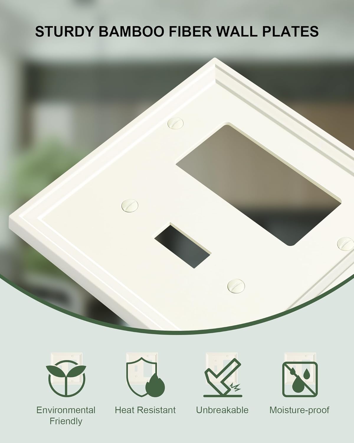 2-Pack Combo Toggle/Decorator Light Switch Cover Plate, Light Almond Modern Decorative Electrical Outlet Covers, Bamboo Fiber Wall Switch Plates and Outlet Covers