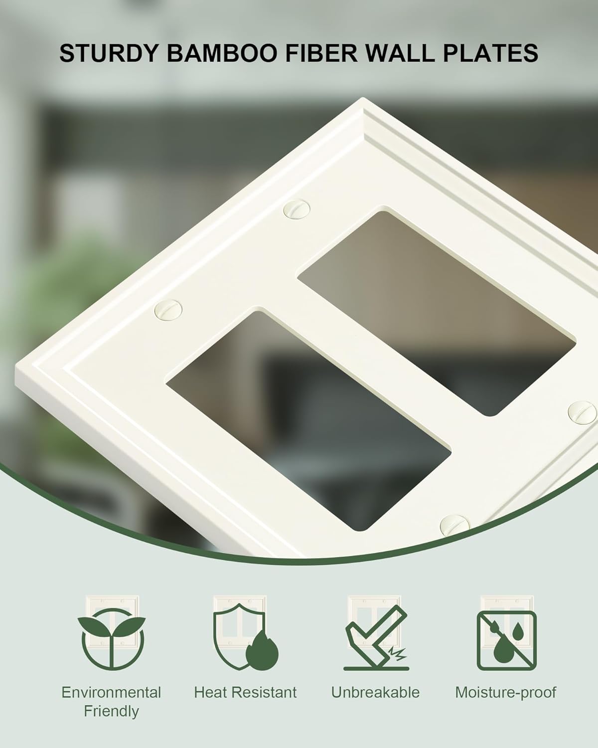 2-Pack Double Decorator Outlet Cover Plate, Light Almond Modern Decorative Switch Plates and Outlet Covers, Natural Bamboo Fiber Wall Plates for Electrical Outlets