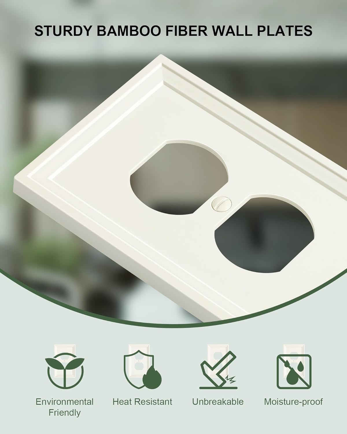 4-Pack Duplex Outlet Cover, Natural Bamboo Fiber Switch Plates and Outlet Covers, Light Almond Decorative Wall Plates for Electrical Outlets, 1 Gang Receptacle Cover, Corrosion Resistant