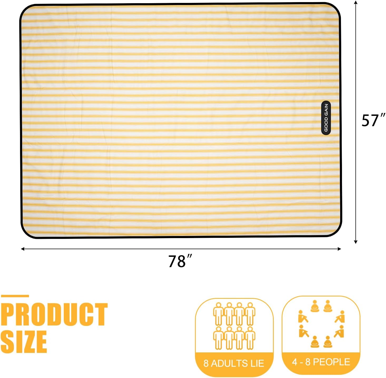 G GOOD GAIN Picnic Blankets Waterproof - Extra Large Outdoor Blanket Sand Free Foldable with Carry Strap for Beach, Camping, Park Grass, Hiking, Travel, Concerts, Indoor(Bumblebee)