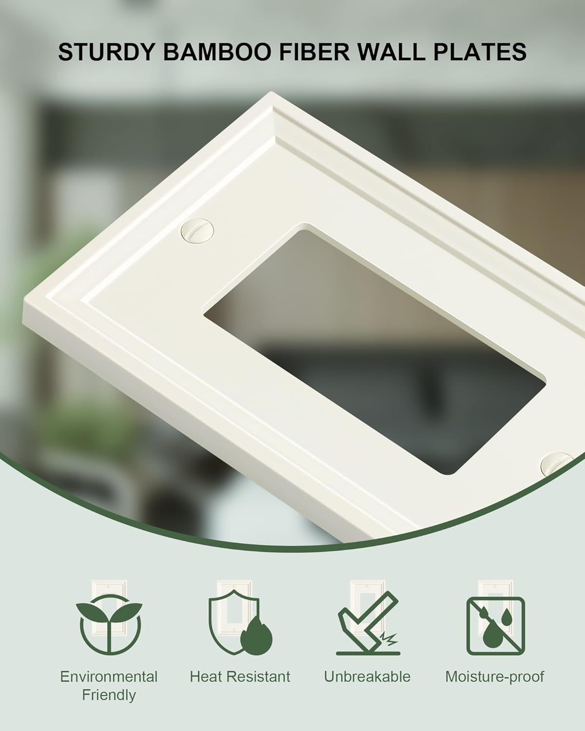 4-Pack Decorator Outlet Cover Plate, Light Almond Modern Decorative Switch Plates and Outlet Covers, Natural Bamboo Fiber Wall Plates for Electrical Outlets