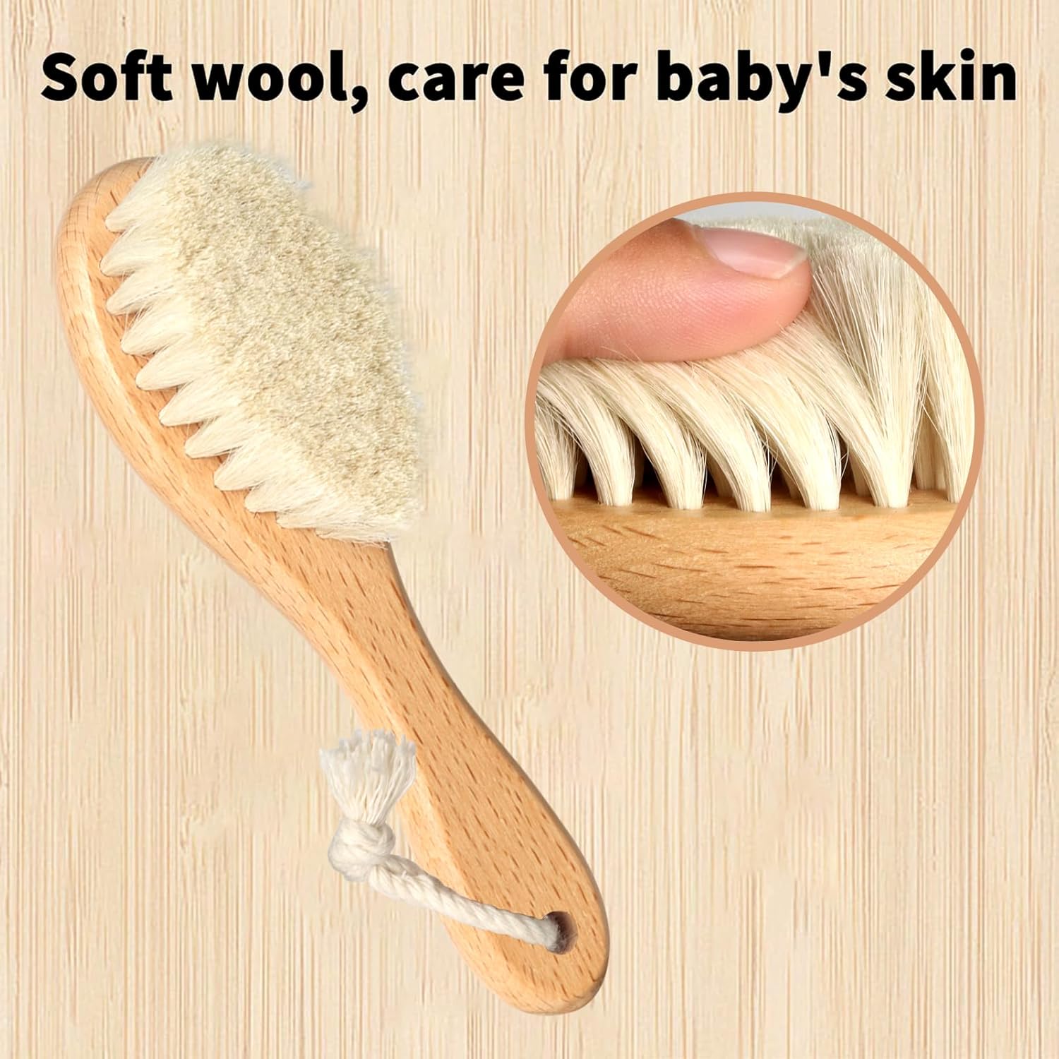 - 【Natural Material】The brush is made of pure natural wool and beech wood, making it safer for your baby; The bristles help redistribute the natural oils on the scalp to prevent cradle caps