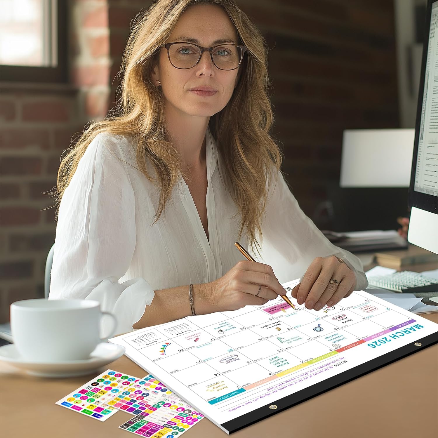 - 📔【Desk Calendar 2025-2026】18 monthly yearly magnetic desk/wall calendar with 3 stickers, covering july 2025 to december 2026. (17" x 12") Each page has a monthly overview with mini-month references to help you plan and organize your school, office and home work efficiently.