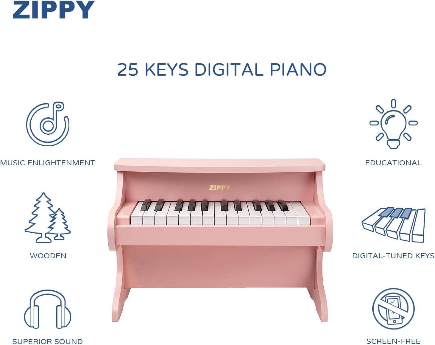 ZIPPY Kids Piano Keyboard, 25 Keys Digital Piano for Kids, Mini Music Educational Instrument Toy, Wood Toy for Toddlers Girls Boys (Pink)