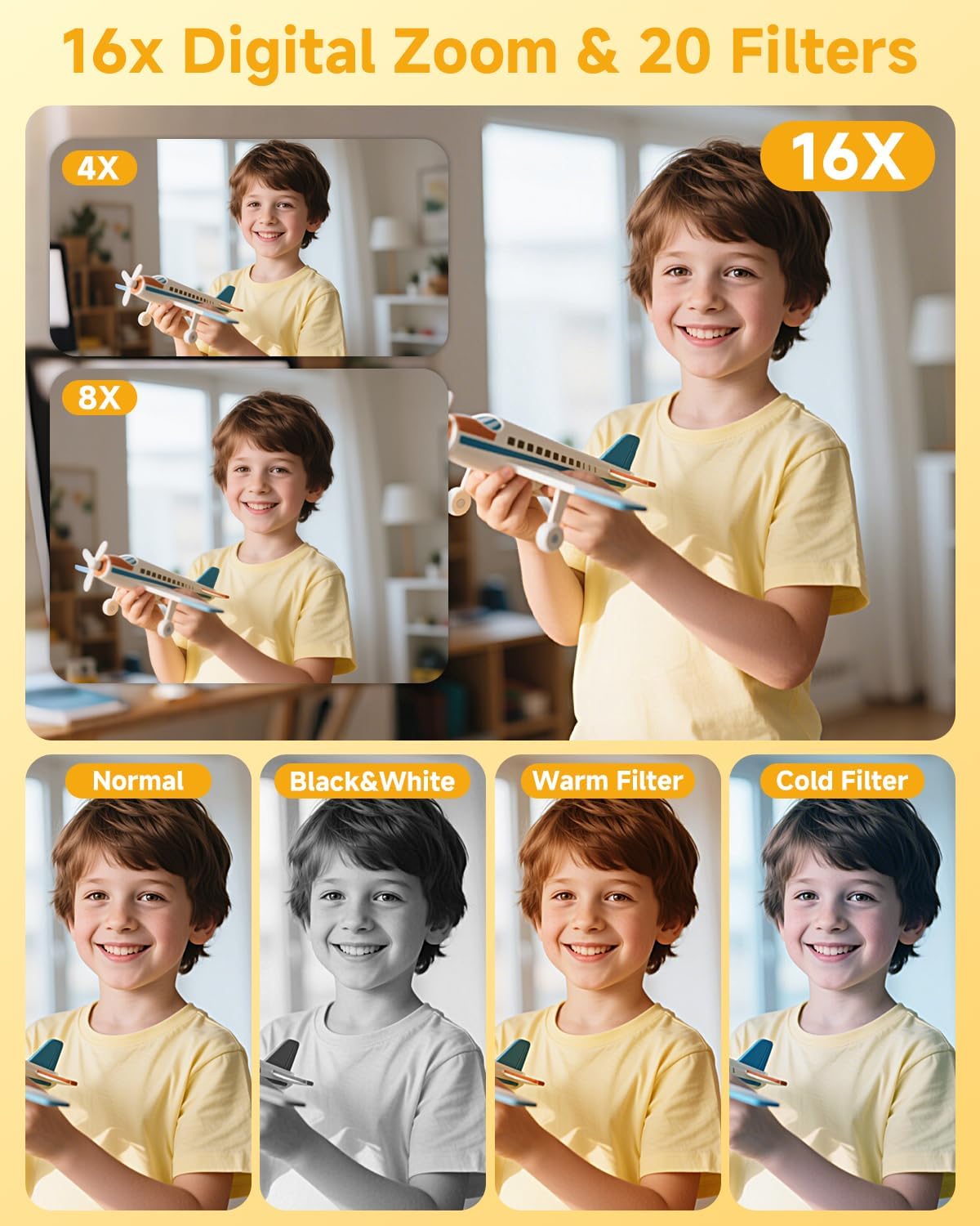 - 【Easy to Operate, Perfect Gift】This portable camera is designed to be easy to use and meet the daily photography needs of beginners. Its intuitive buttons and simple menus ensure that capturing every moment is as easy as pressing a button. It makes a thoughtful gift for young boys and girls or anyone who loves photography, a surprise for birthdays, Christmas or any special occasion.