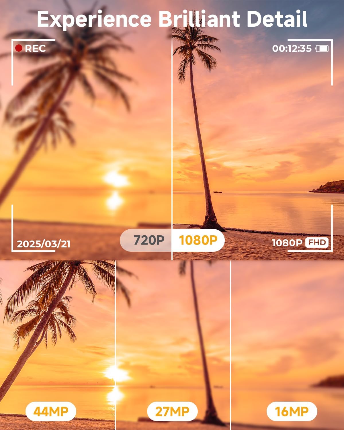 - 【44MP Photo & 1080P FHD Video】:This compact digital camera is equipped with Upgrade CMOS technology ensures precise detail. Mini camera support 44MP photos and 1080P UHD video recording and features a 2.4inch Ultra HD display. It comes with a 32GB memory card to record fun and memorable moments at any time.