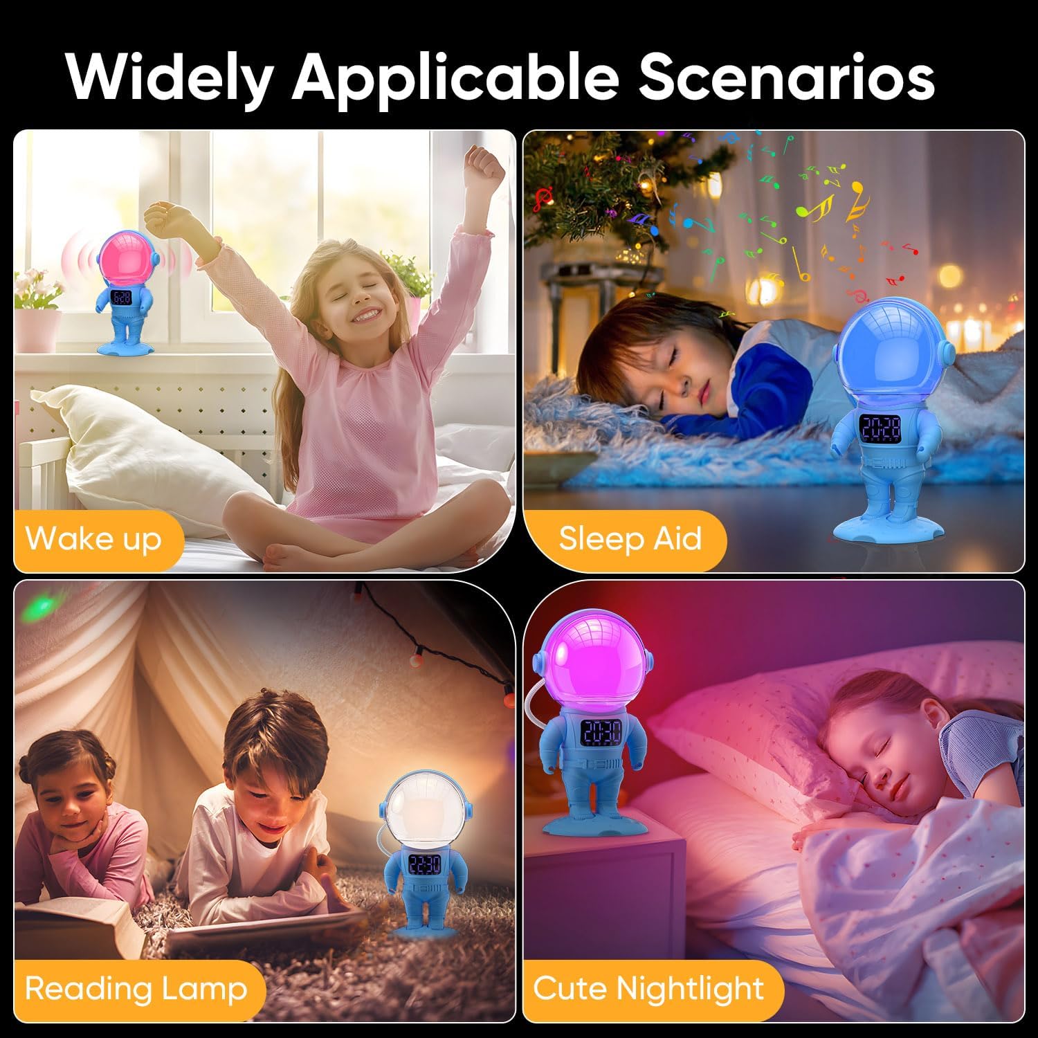 Astronaut Sunrise Alarm Clock for Kids, White Noise Sound Machine with 30 Soothing Sounds, 22 Dimmable Nightlights, Bluetooth Speaker, Dual Digital Alarm Clocks, Wake Up Light for Bedroom, Adults