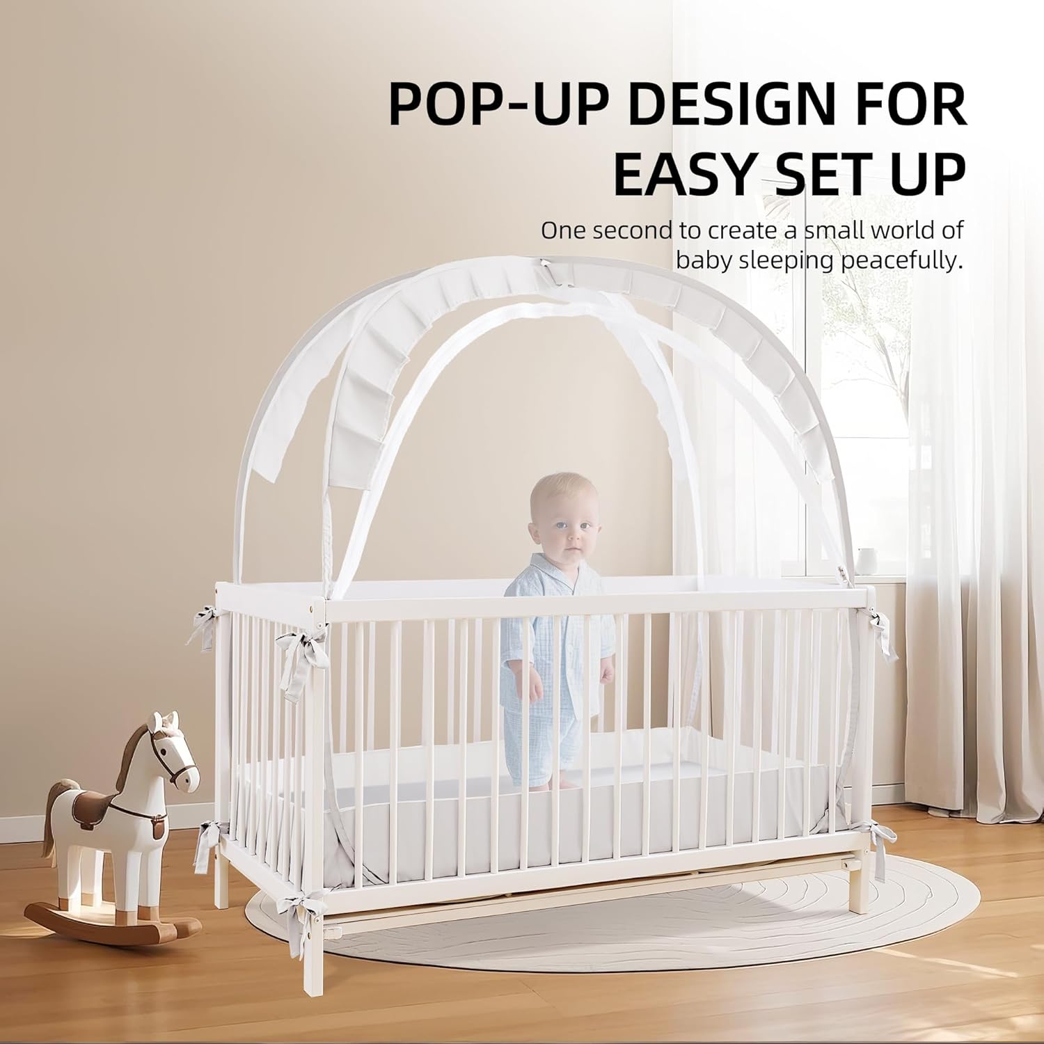 Lazyzzzz Baby Crib Tent - Pop Up Crib Canopy with Double Zipper Self-Locked,1200 Holes/Inch Mesh Crib Net to Keep Baby from Climbing Out, Portable Easy Install 55" L x 27" W x 51" H White