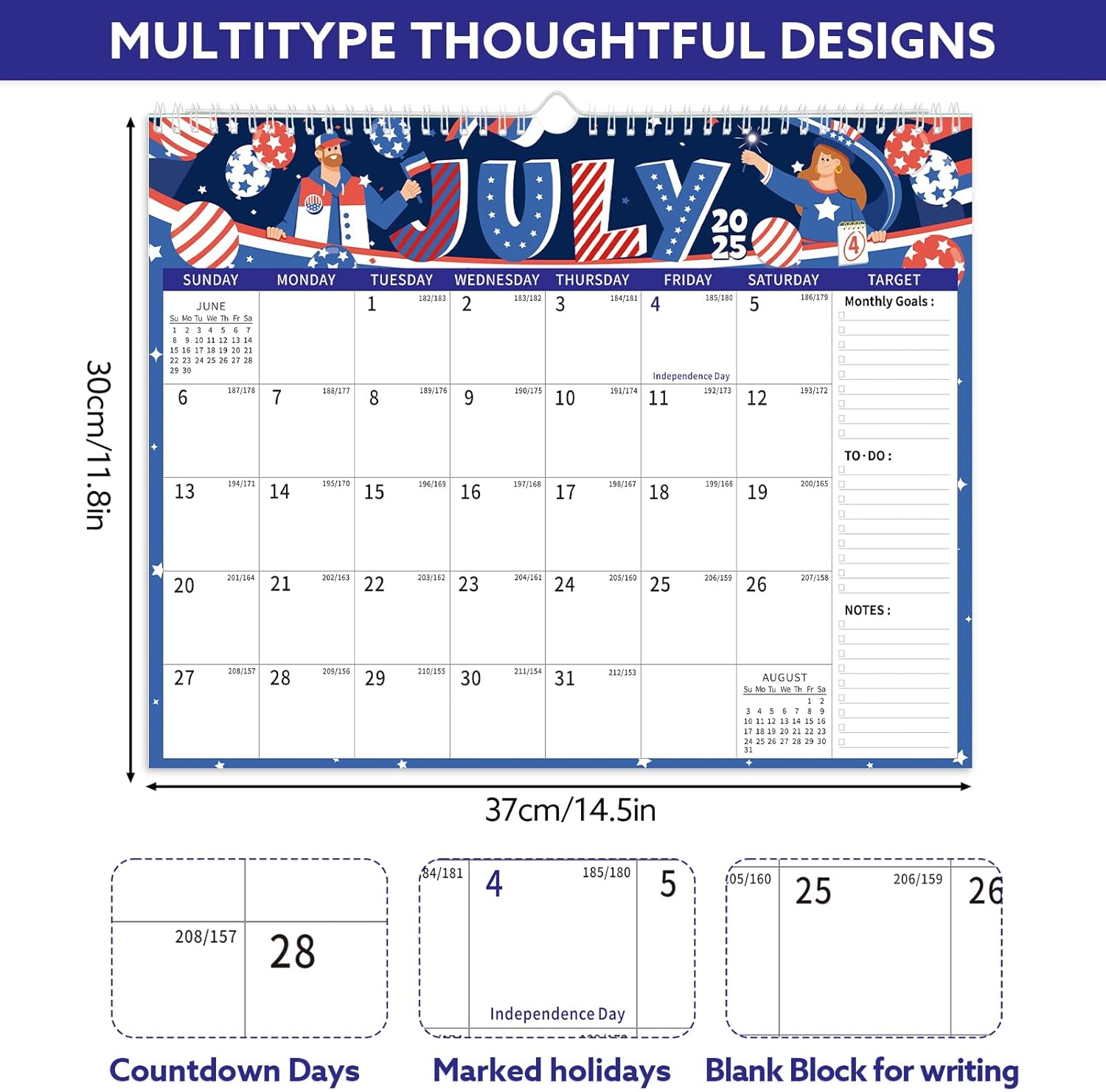 - 【Organize Your Life 】The 2025-2026 calendar is suitable for arranging daily, weekly and monthly activities for your family, helping organize your life effectively. At the same time, you can record your notes, ideas, meeting times, etc. to avoid missing important things.Highlighted holiday design can help remind you of important holidays and manage your life effectively.