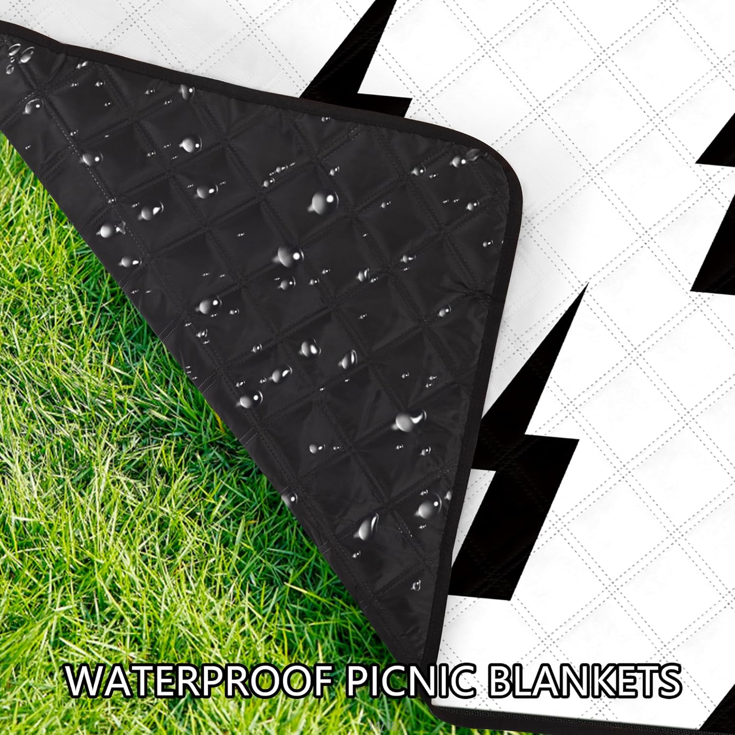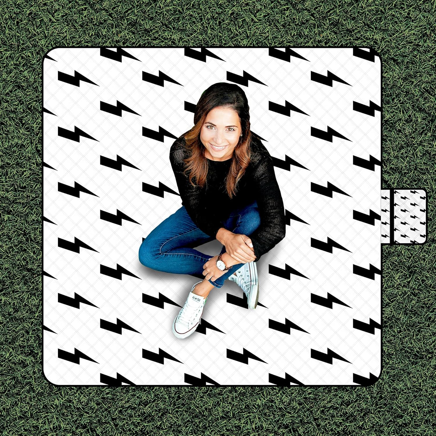 - Eye-Catching Lightning Pattern: Featuring a bold black lightning bolt design on a clean white background, this picnic blanket adds a stylish and modern flair to your outdoor setup—turning heads while offering function and fun.