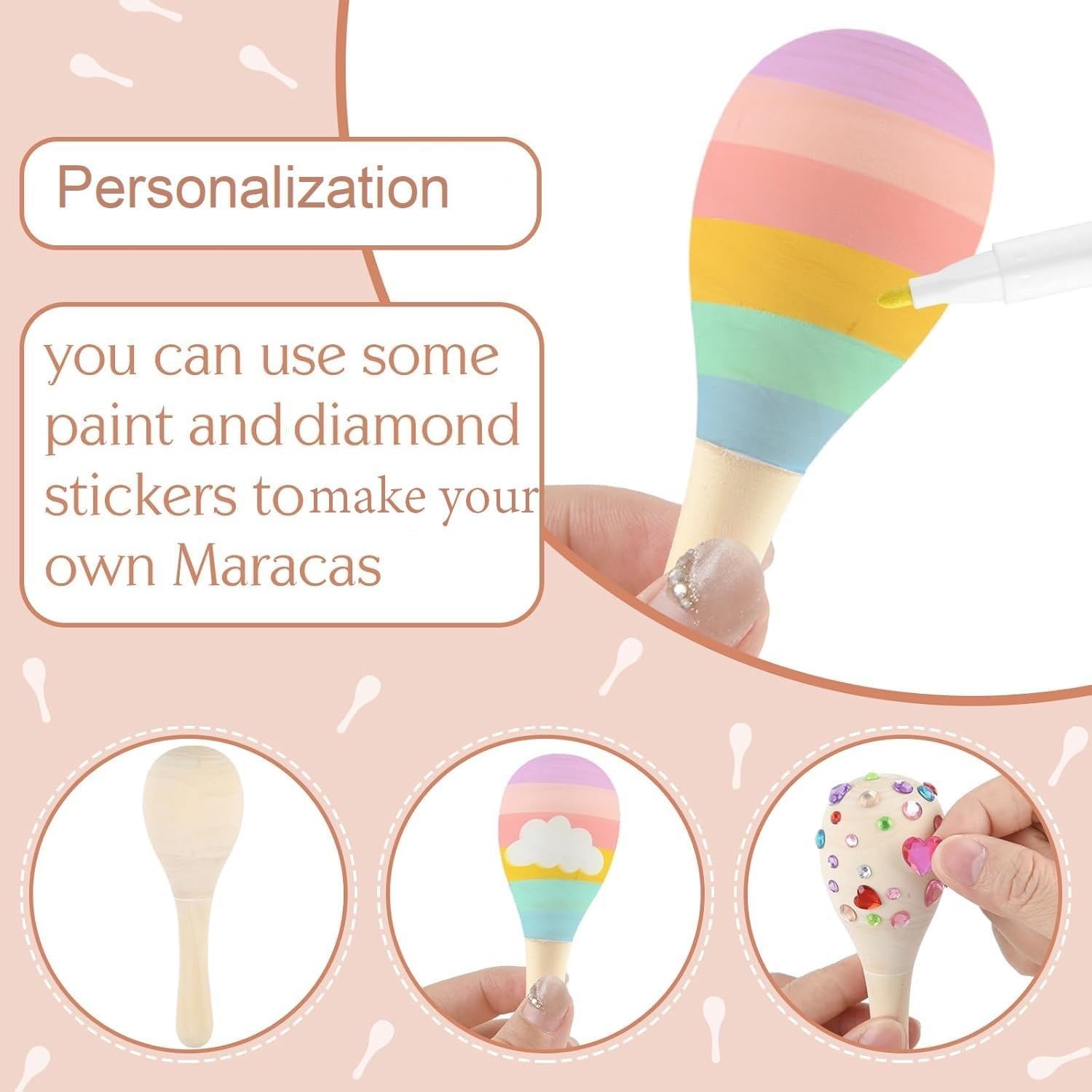 - Reliable Material: The mini maracas are made of quality natural wood, smooth surface, lightweight, and do not easily break or deform. The acrylic paint is easy to color and dries quickly, great for painting on wood maracas