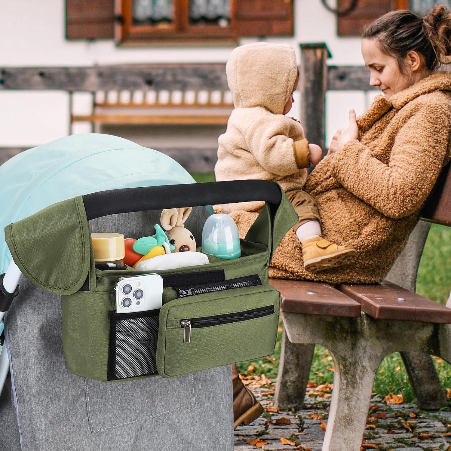 - Multiple Usage Methods : It can be hung as a stroller cup holder organizer on the stroller. When you don't need to use a stroller, you can also install the accompanying strap and carry this organizer bag for easy outing.