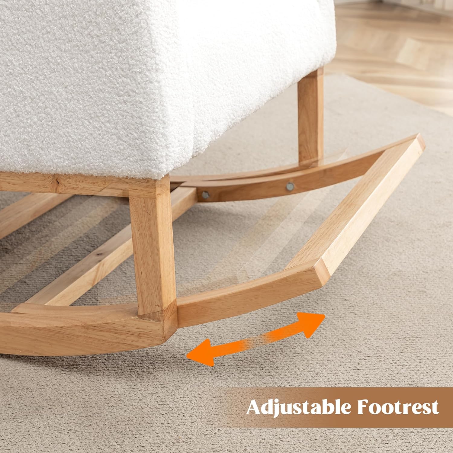 - Safe & Mute Rocking Design : With strong well-built wood, makes this indoor rocker accent chair stable. Extended wooden leg prevent rollover when you are coaxing baby.The non-slip pad at the end of the wooden legs of rocker chair can not only bring a soothing effect, but avoid scratching the floor.