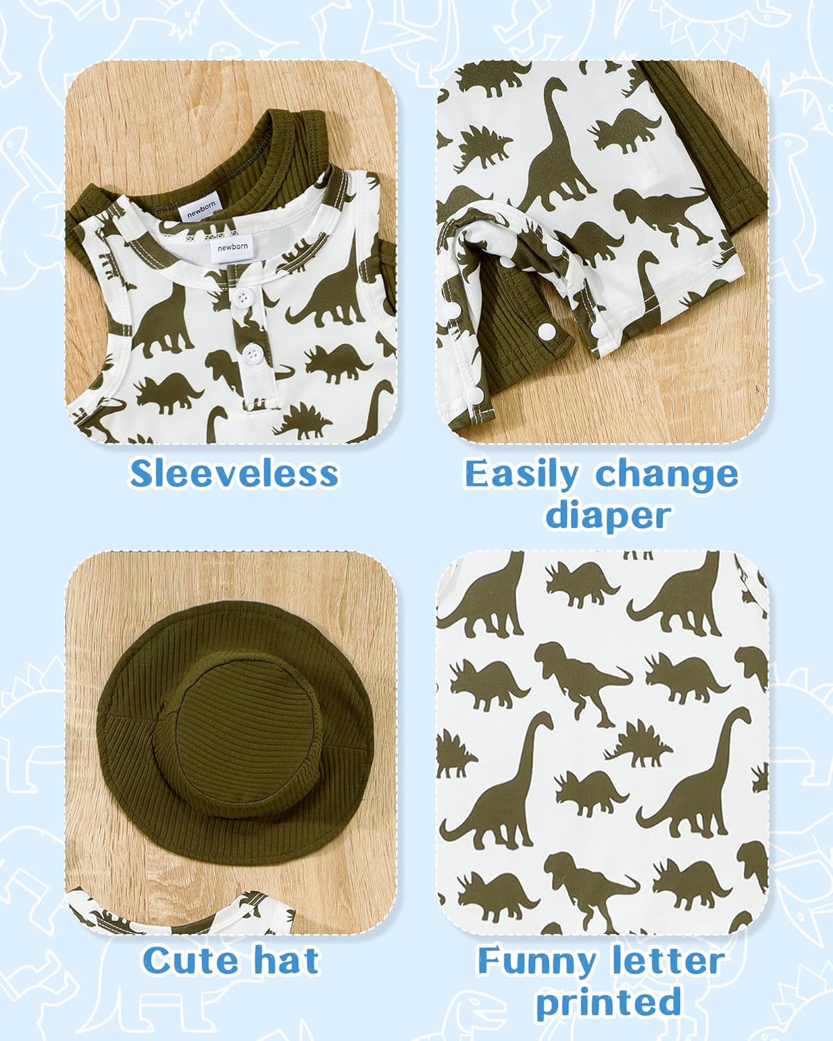 NZRVAWS Newborn Baby Boy Clothes Infant 0 3 6 9 12 Months Romper Sleeveless Jumpsuit Bodysuit Hat